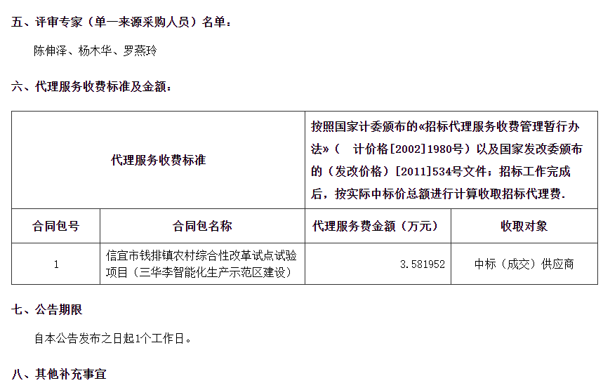 信宜市钱排镇农村综合性改革试点试验项目(三华李智能化生产示范区建设)(二次)结果公告